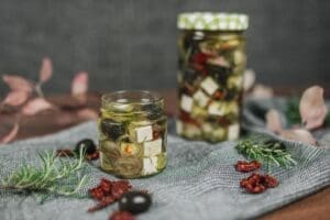 - Naplňte sklenice a dolijte olivovým olejem.