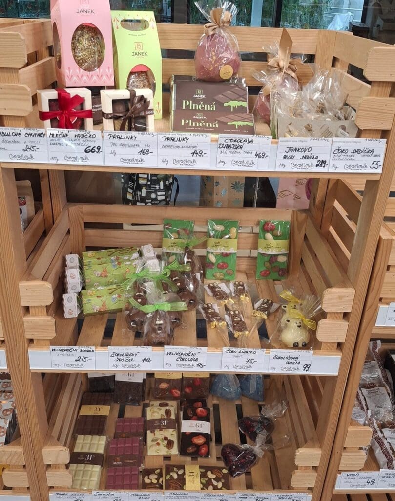 Součástí prodejny je dlouhodobě také doplněný sortiment kvalitních potravin, který přirozeně rozšiřuje naši rajčatovou nabídku. Najdete zde sezónní zeleninu od spřátelených českých pěstitelů, například český česnek, a také výběr prémiových čokolád, pralinek, sušeného ovoce, zdravých svačin pro děti, moštů, džusů, sirupů, oříšků, semínek i dalších dobrot. V průběhu roku nabízíme také sezónní limitované edice, které odpovídají aktuálnímu období.